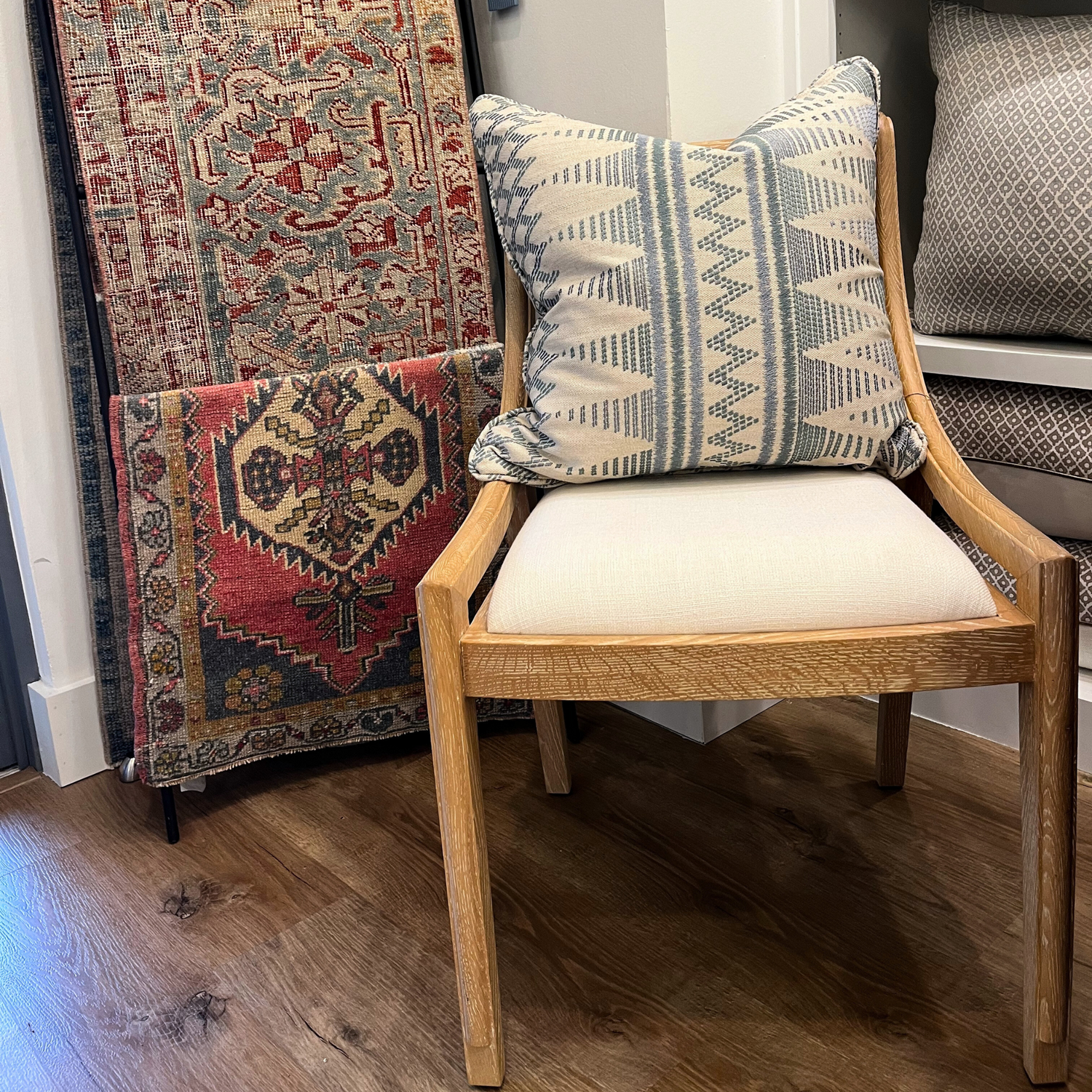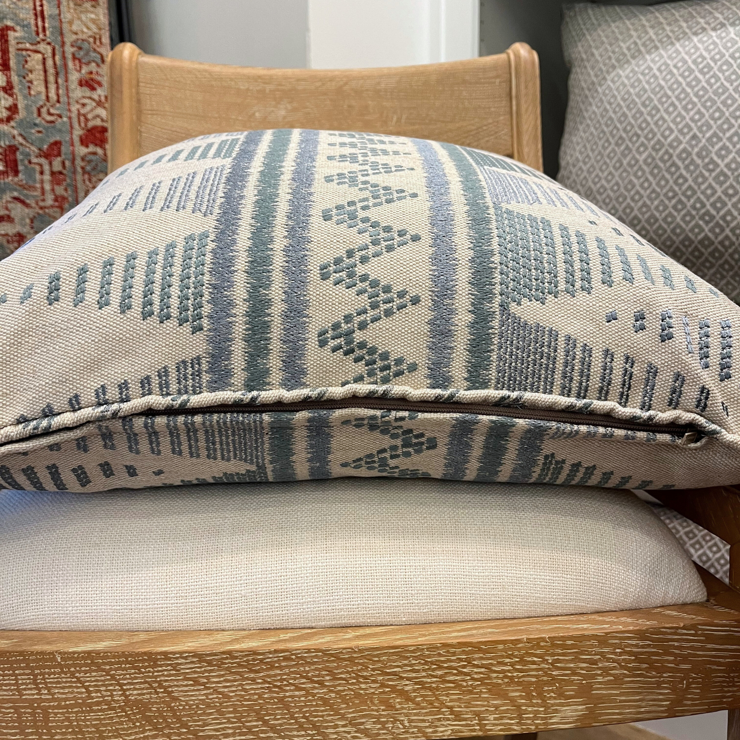 22" x 22" Pillow - Embroidered Zig Zag in Cadet Blue