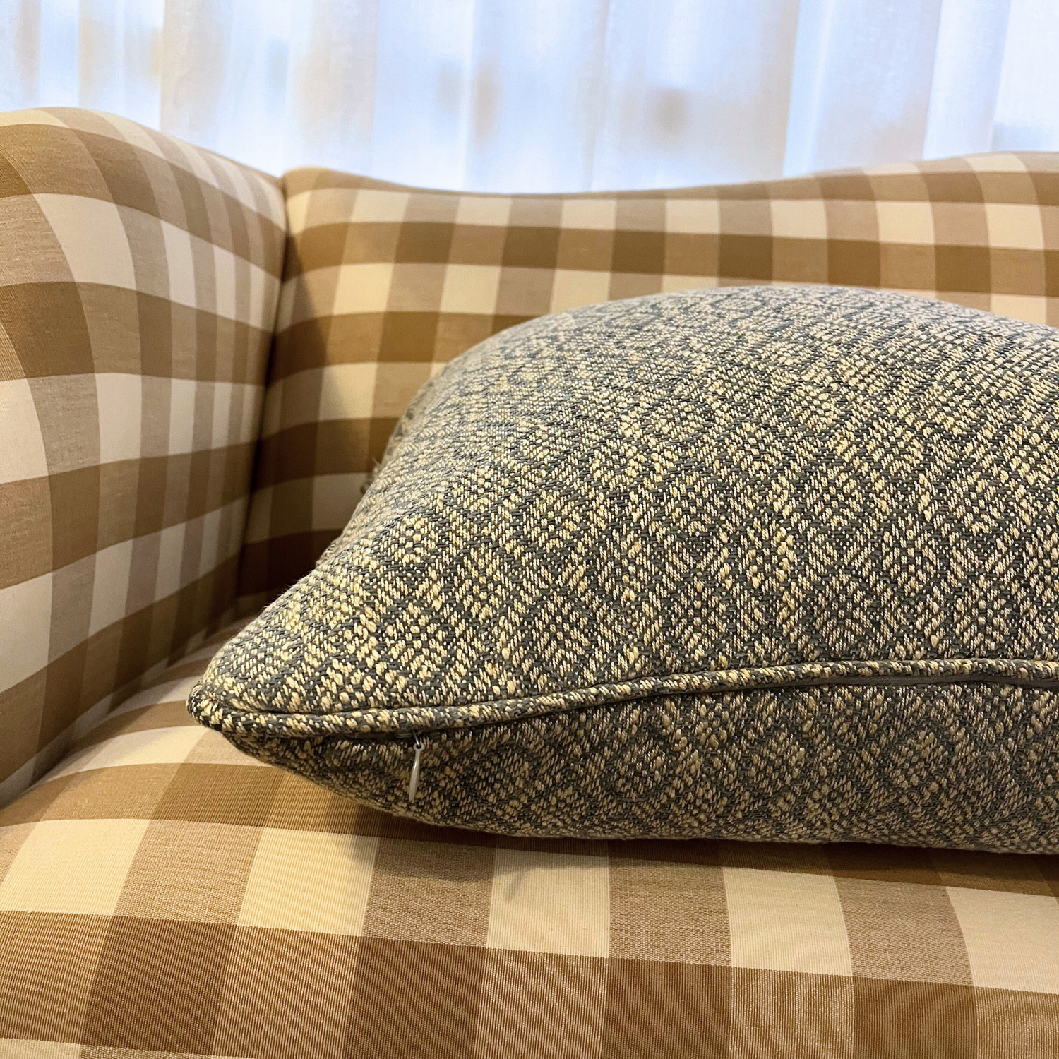 22" x 22" Pillow - GP & J Blue and Cream Diamond