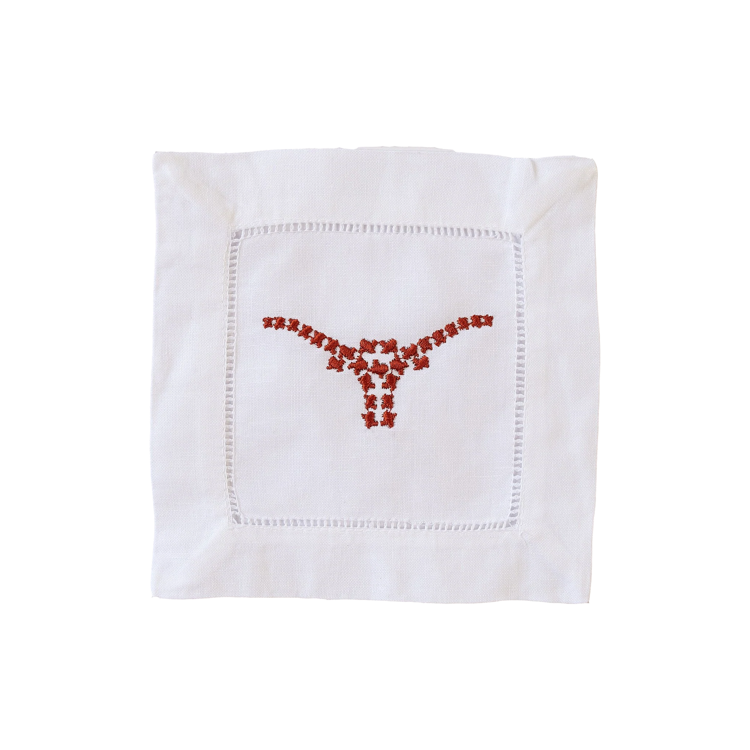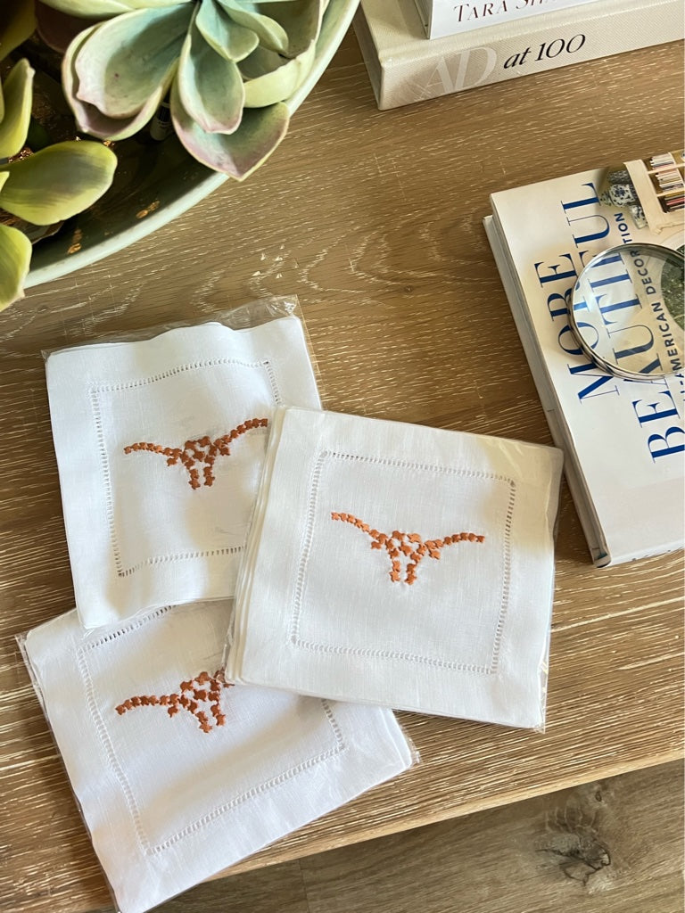 Hook 'em! Longhorn Hemstitch Embroidered Cocktail Napkins- set of 4