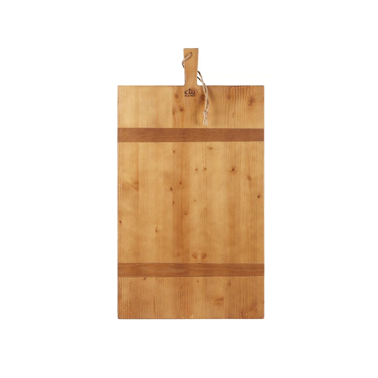 These reclaimed wood boards are distinguished by two strips of contrasting timber on one side, while the other side of the board shows the authentic beauty of the reclaimed wood. Ideal for showcasing bread, cheese or fruit at casual gatherings, the large wooden pizza board is even better for serving your own homemade pizza or charcuterie spread. Due to the nature of the found beams, no piece will be perfectly identical and will contain varying crevices and splits within the wood, embracing its organic beauty even further.