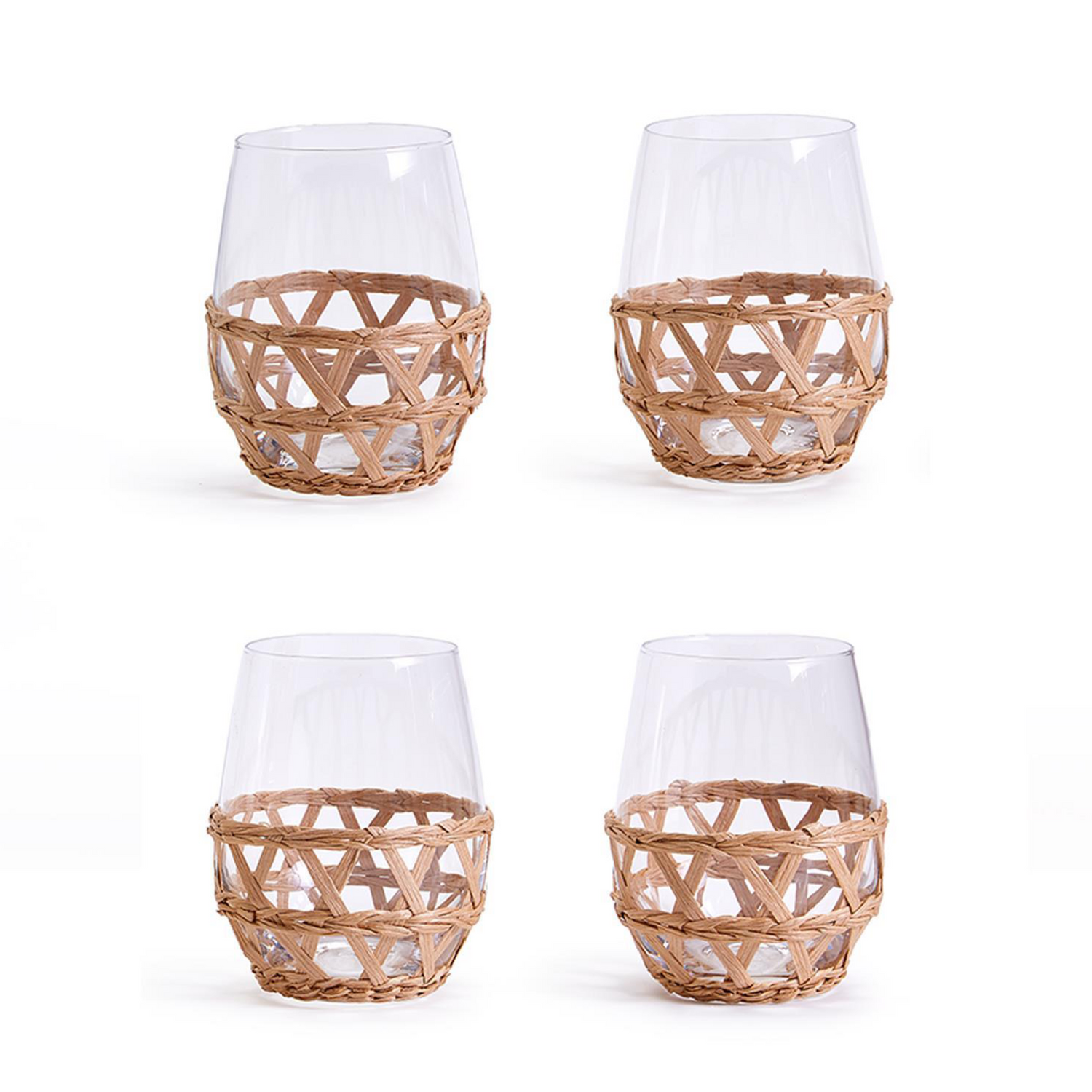 Add some island chic into your home with these amazing stemless wine glasses. Each with a hand-woven lattice paper yarn that is removable. Great for wine nights with your friends!