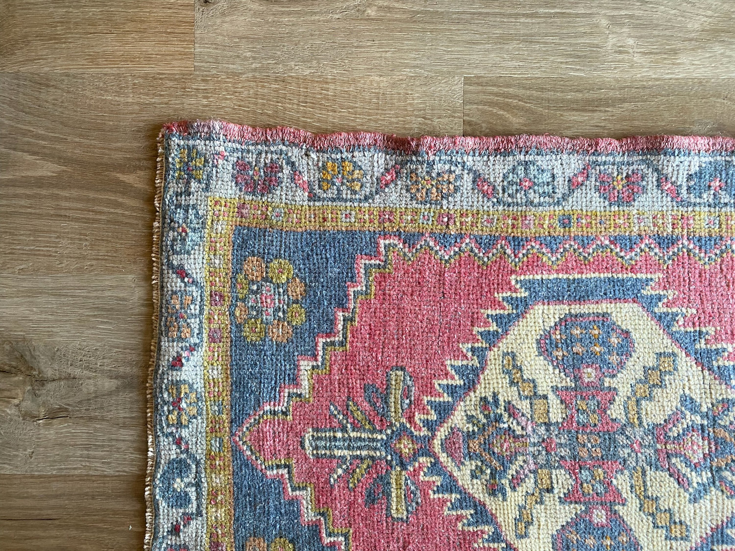 21" X 37" Red, Blue, and Gold Small Vintage Rug