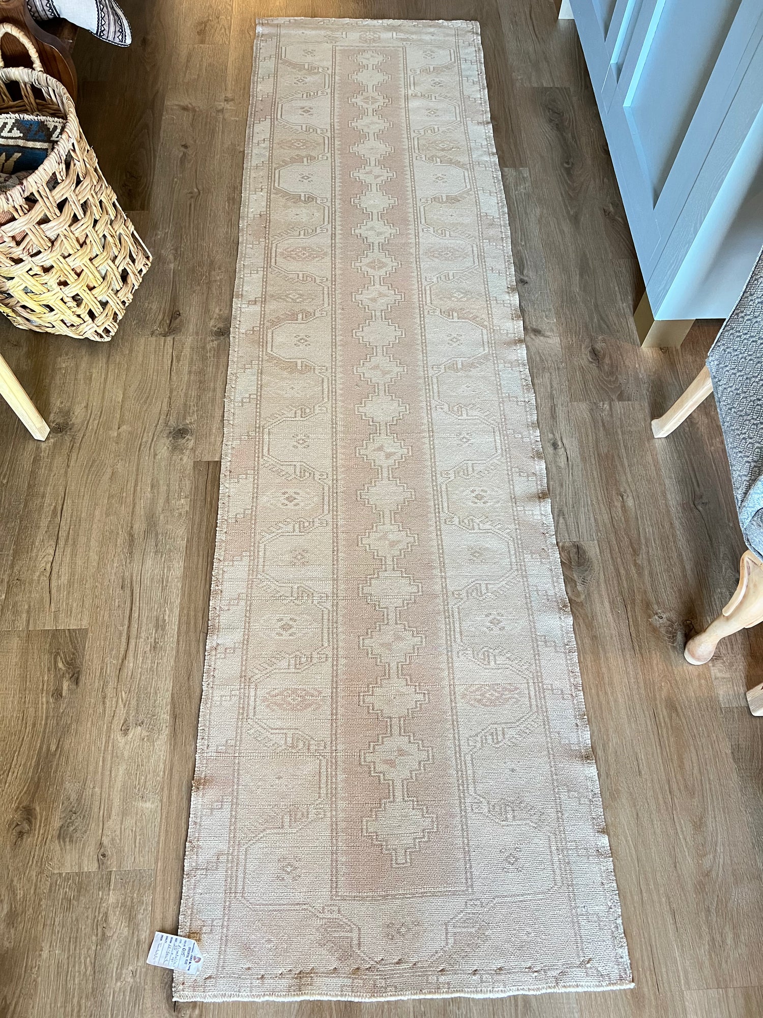 30" X 109" Teal, Blush, and Cream Vintage Rug Runner